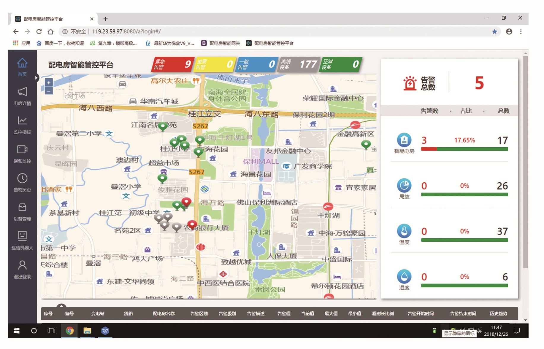通過WEB客戶端應(yīng)用管理相關(guān)業(yè)務(wù)流程,點(diǎn)擊地圖選取管轄區(qū)域內(nèi)任一屬下的電房,進(jìn)入后通過圖形化方式顯示電房的實(shí)時(shí)監(jiān)控?cái)?shù)據(jù),提供控制按鈕及操作警示。增設(shè)外網(wǎng)網(wǎng)關(guān)或通過內(nèi)網(wǎng)手機(jī)卡后,可向相關(guān)管理人員的外網(wǎng)移動終端或手機(jī)發(fā)送報(bào)警功能。