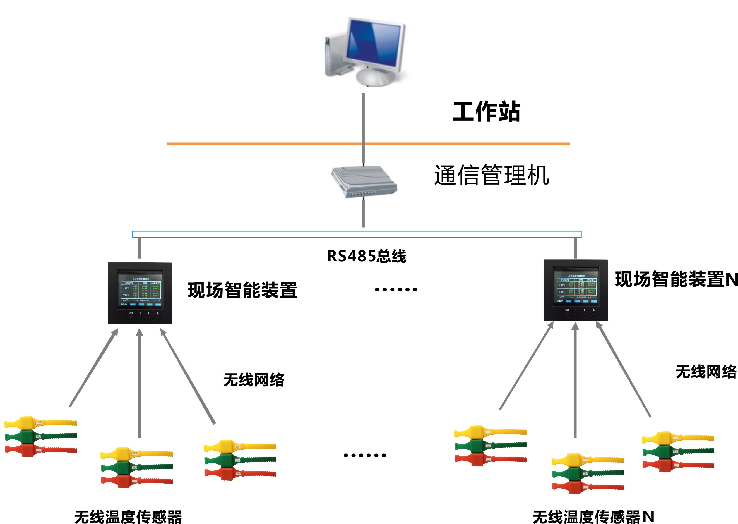 無線式溫度監(jiān)測系統(tǒng)具有極高的可靠性和安全性,且價(jià)格低廉,可直接安裝到每臺高壓開關(guān)、母線接頭、戶外刀閘或變壓器上。系統(tǒng)配備標(biāo)準(zhǔn)通訊接口,可聯(lián)網(wǎng)運(yùn)行。通過上位機(jī)軟件,可記錄高壓設(shè)備實(shí)時(shí)運(yùn)行溫度的數(shù)據(jù)。為高壓設(shè)備的維修提供累積數(shù)據(jù),實(shí)現(xiàn)了高壓設(shè)備熱故障預(yù)知維修。